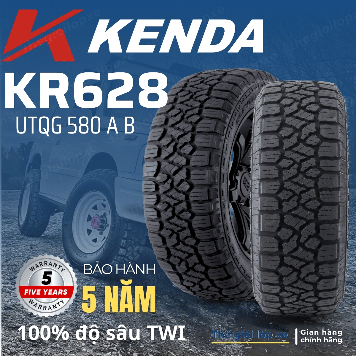 Lốp Kenda 265/60R18 Kr628 là dòng lốp ĐỊA HÌNH AT và là dòng lốp xuất khẩu Mỹ, độ bền cao 96.000km, là được thiết kế tại phòng Nghiên cứu Kenda tại Mỹ dành cho xe Bán tải, Offroad.